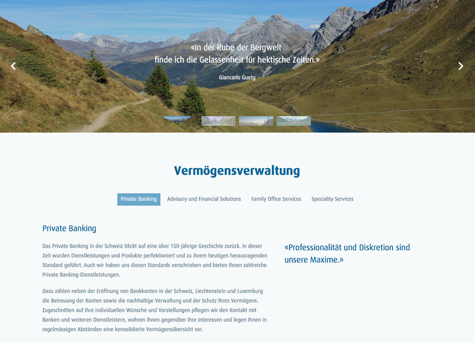 Die Clarus Capital Group (CCG) als Vermögensverwalter und Asset Manager will den Service für ihre anspruchsvolle und gehobene, internationale Klientel weiterentwickeln. Mit diesem Fokus gestalten wir die bisherige minimalistische Webseite neu und setzen das neue Design mit drei Schwerpunkten um: