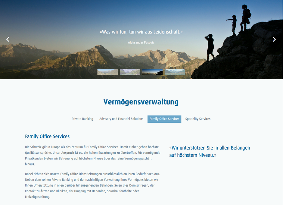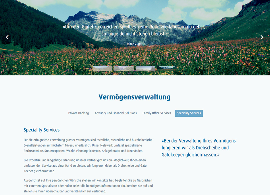 Wie entstehen Höchstleistungen? Die 6 Partner der CCG verraten auf der Startseite ihre ganz persönliche Orte als Energiequelle zum Erfolg. Eine ausdrucksstarke Bilderwelt von Berglandschaften war Ziel unserer Fotorecherche. Das Erobern von Gipfeln unterstreicht den Leitgedanken und das Erreichen von gemeinsamen Zielen.